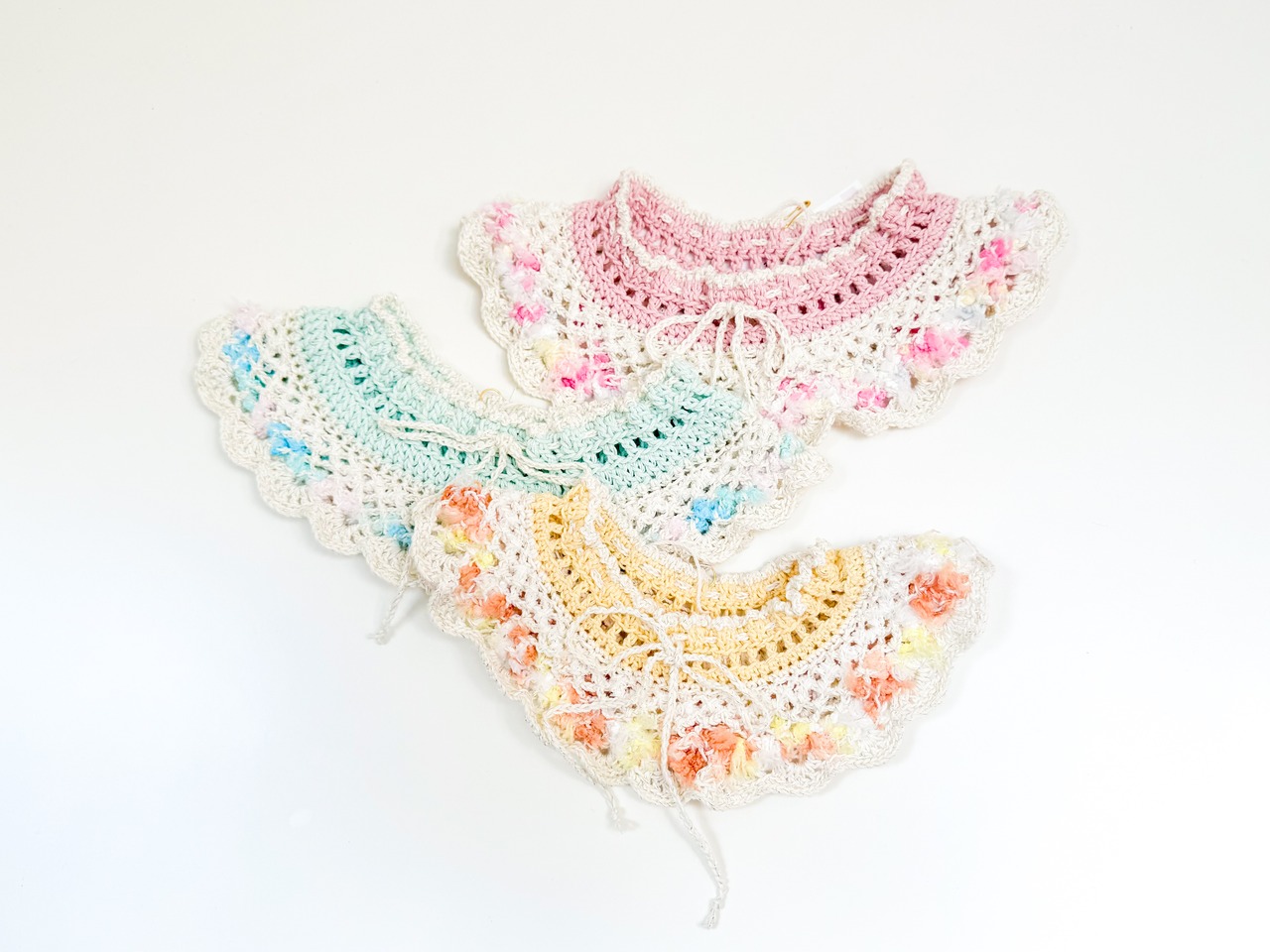 可愛いヤーンの組み合わせが、愛犬のコーディネートに華やかさと遊び心をプラスします。