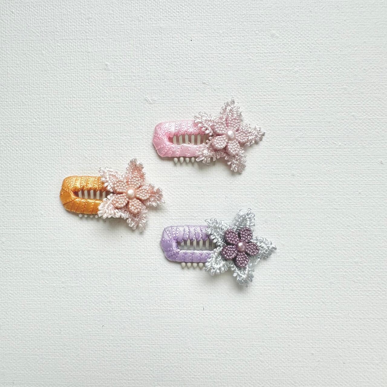 小さな櫛のような形状で、毛に差し込んで固定します。